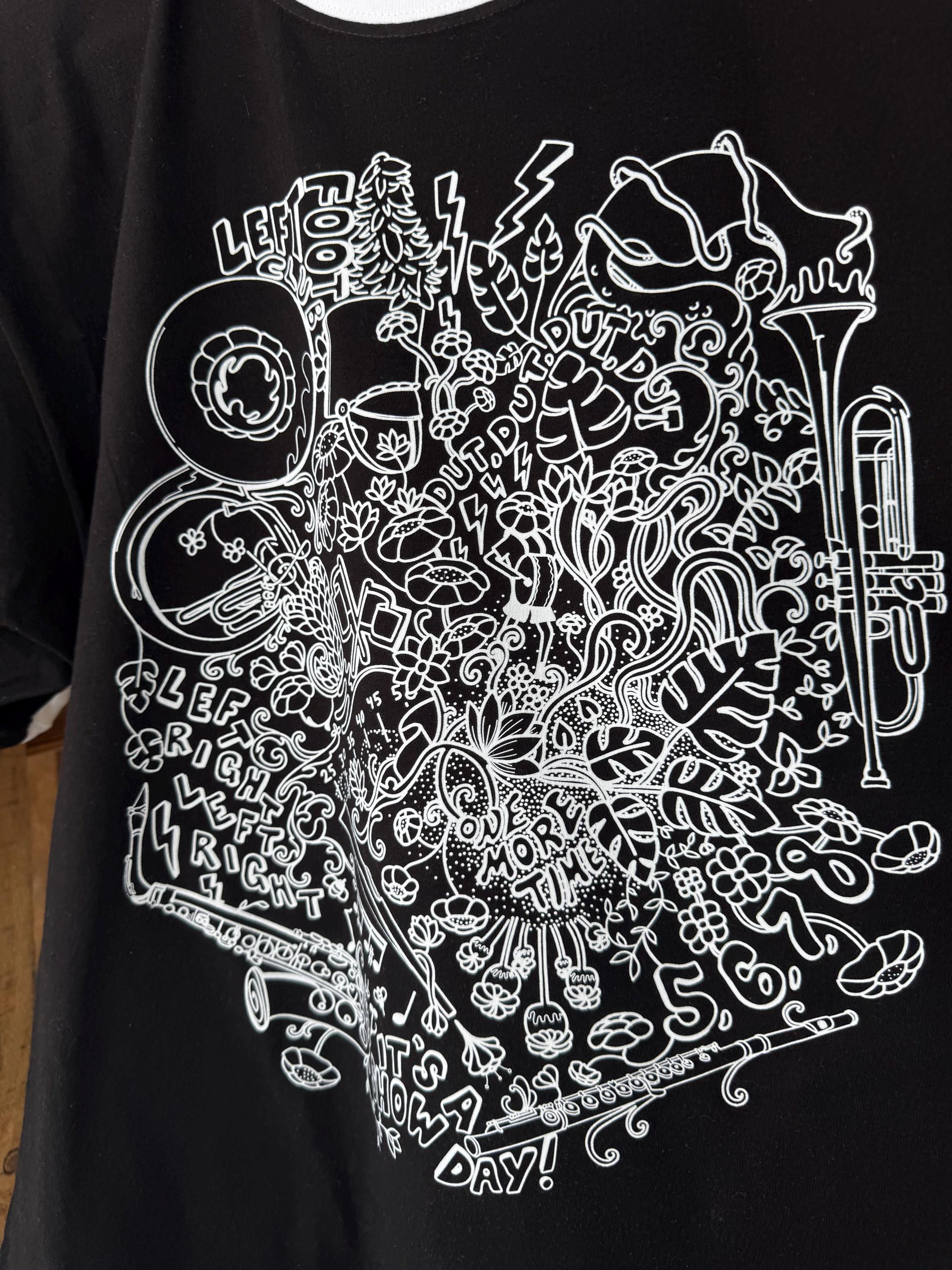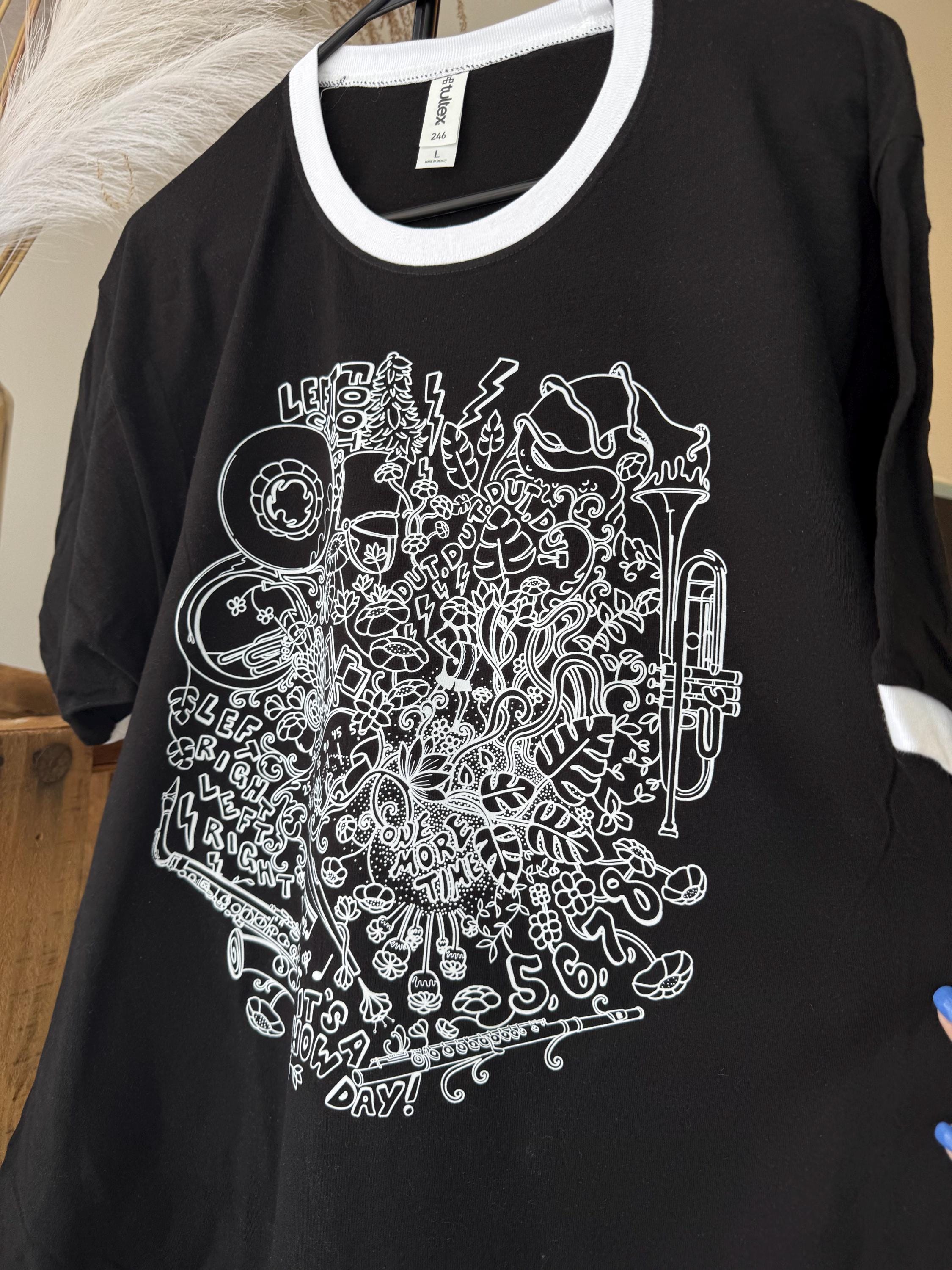 The Doodle Marching Band shirt is the coolest retro unique gift for Marching Band lover. With Marching Band quotes, instruments drawn throughout and fun things to find everywhere. This Unisex t-shirt is perfect for your Marching Band Kid, Marching Band Parent or Marching Band Director. It's the perfect gift for the person in your family who loves marching band. Order Black with White or White with Black!!