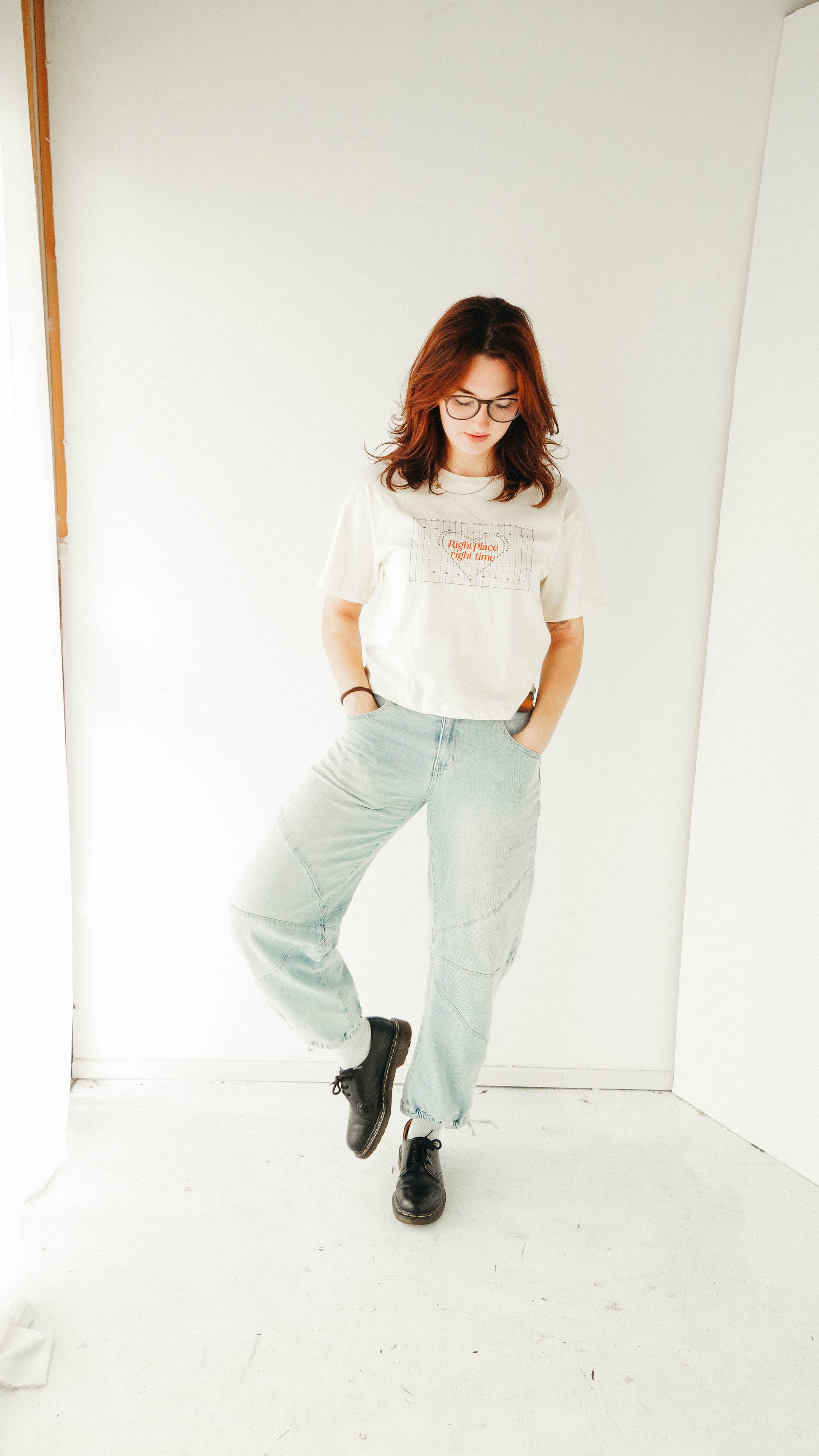 This tee offers a comfortable and relaxed boxy style. It has that lived in feel and almost no shrinkage when washing making it perfect for everyday wear.